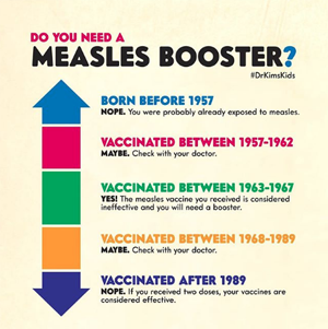The MMR vaccine is the best defense against measles—it's 97% effective after two doses! If you aren’t vaccinated and you or your child is exposed, the best option is to get a booster within 72 hours. There are no treatments once you are infected, only supportive care and hoping your immune system can handle it naturally. See the image above about who needs a booster. It varies!